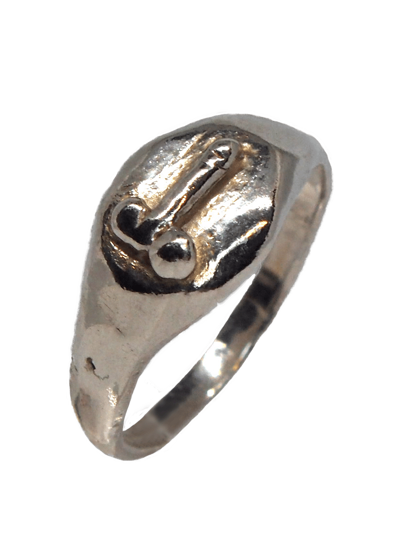 Solid silver ring with phallus charm. Carved, cast and finished by hand, each ring will vary slightly from the image. Roman Luck Rings are available in stock sizes Small (UK N), Medium (UK P) and Large (UK R), but for an extra £20 you can get your perfect fit and order your ring in a bespoke size.